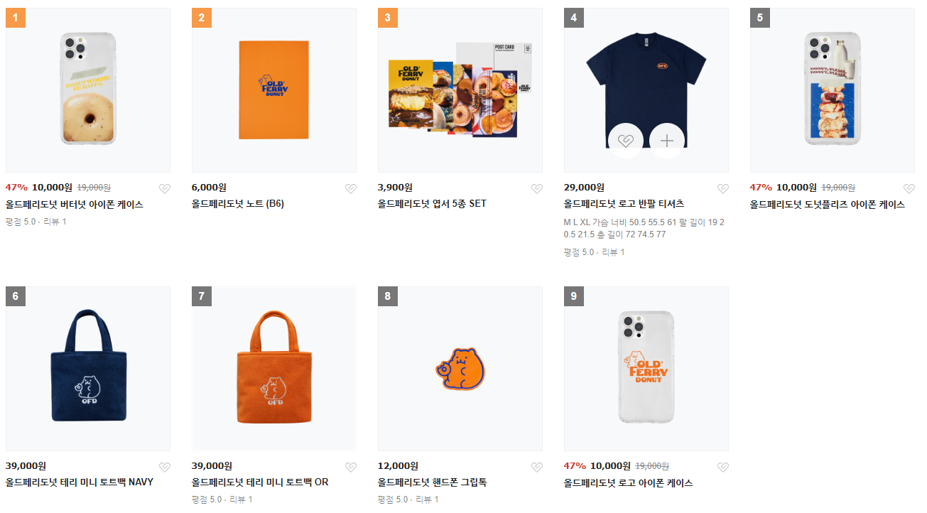 그리고 올드페리 도넛에 대해 찾아보니 다양한 굿즈도 판매하고 있었는데요!(폰케이스, 토트백, 노트 등)
