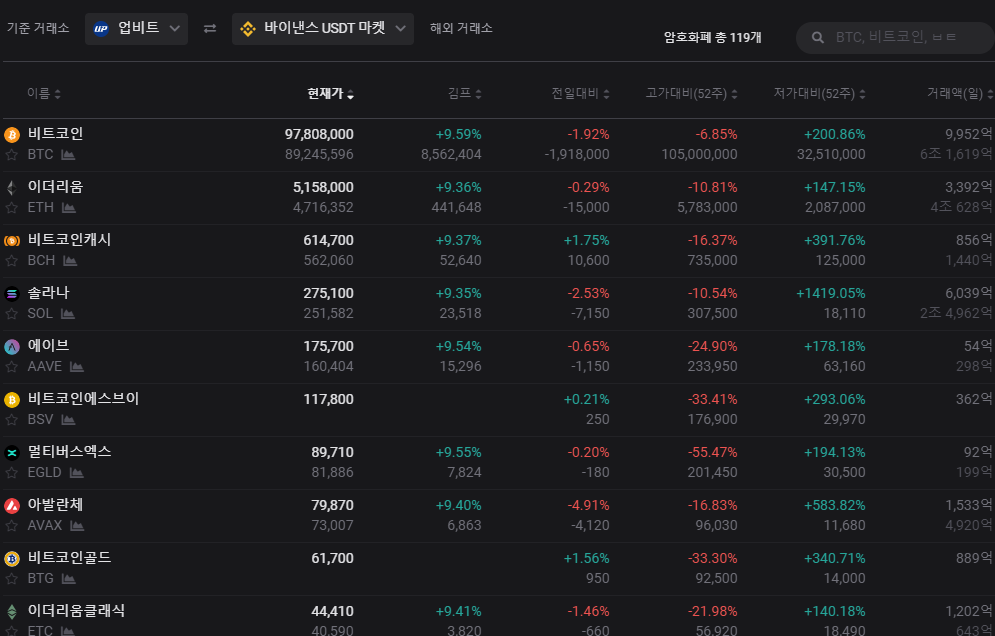 ★ 코인별 시세 확인 사이트[김프가]
