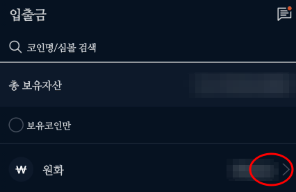 예를 들어 업비트 거래소를 이용하여 100만원으로 비트코인을 거래하실 경우, 케이뱅크 계좌에 100만원을 입금하신 후 아래 그림과 같이 순서대로 [입출금] - [원화] - [입금하기] 순서로 클릭하여 입금