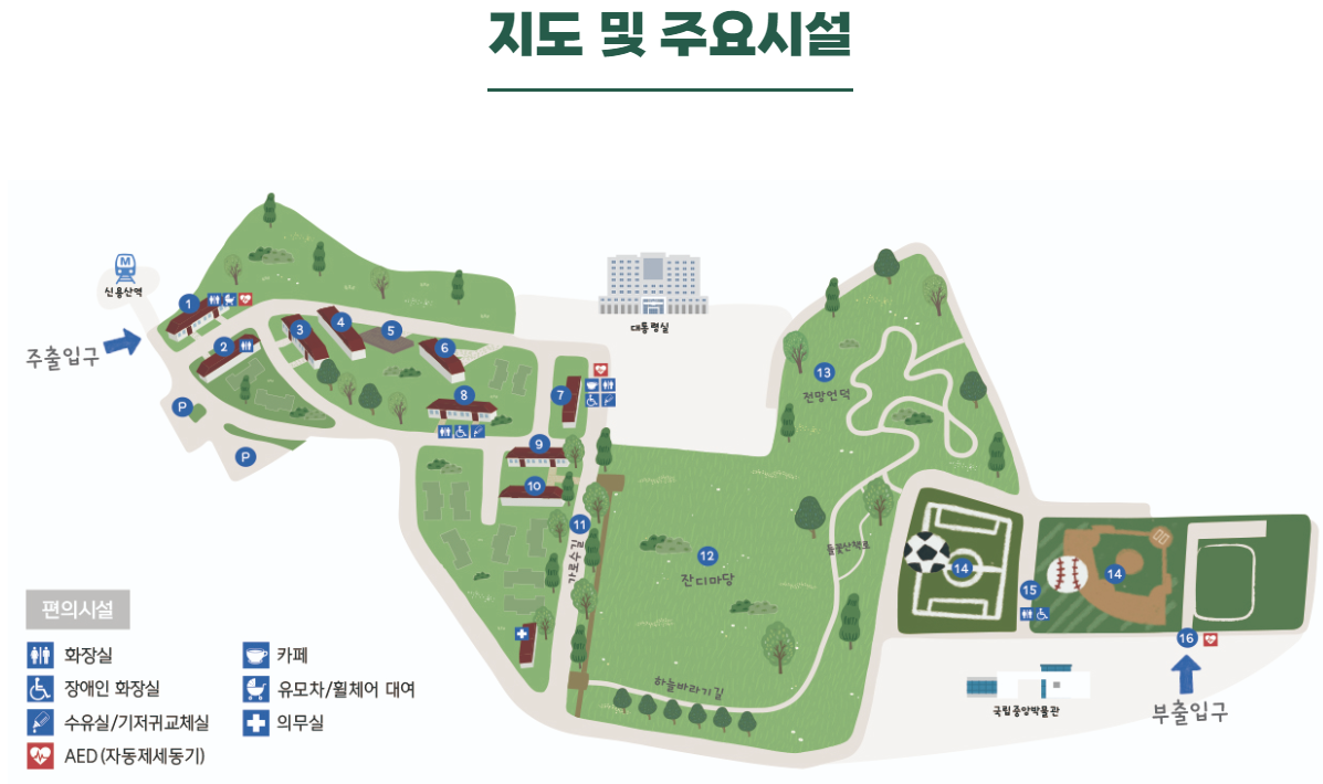 용산공원(용산어린이정원)의 지도 및 주요 시설은 다음과 같습니다.