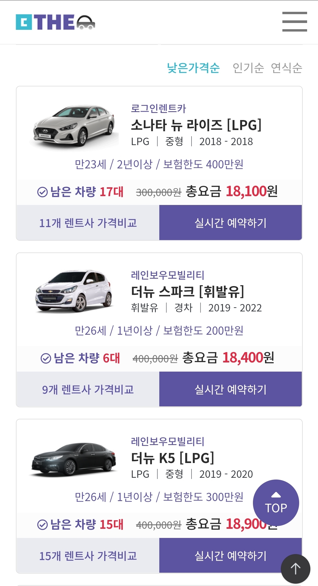 2박3일 48시간 동안 가장 저렴한 차량이 무려 보험료(완전자차) 포함 18,100원???실화입니다.